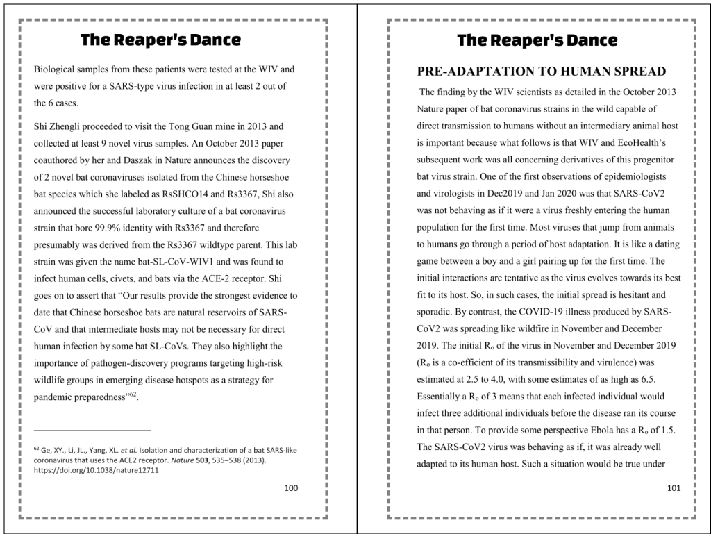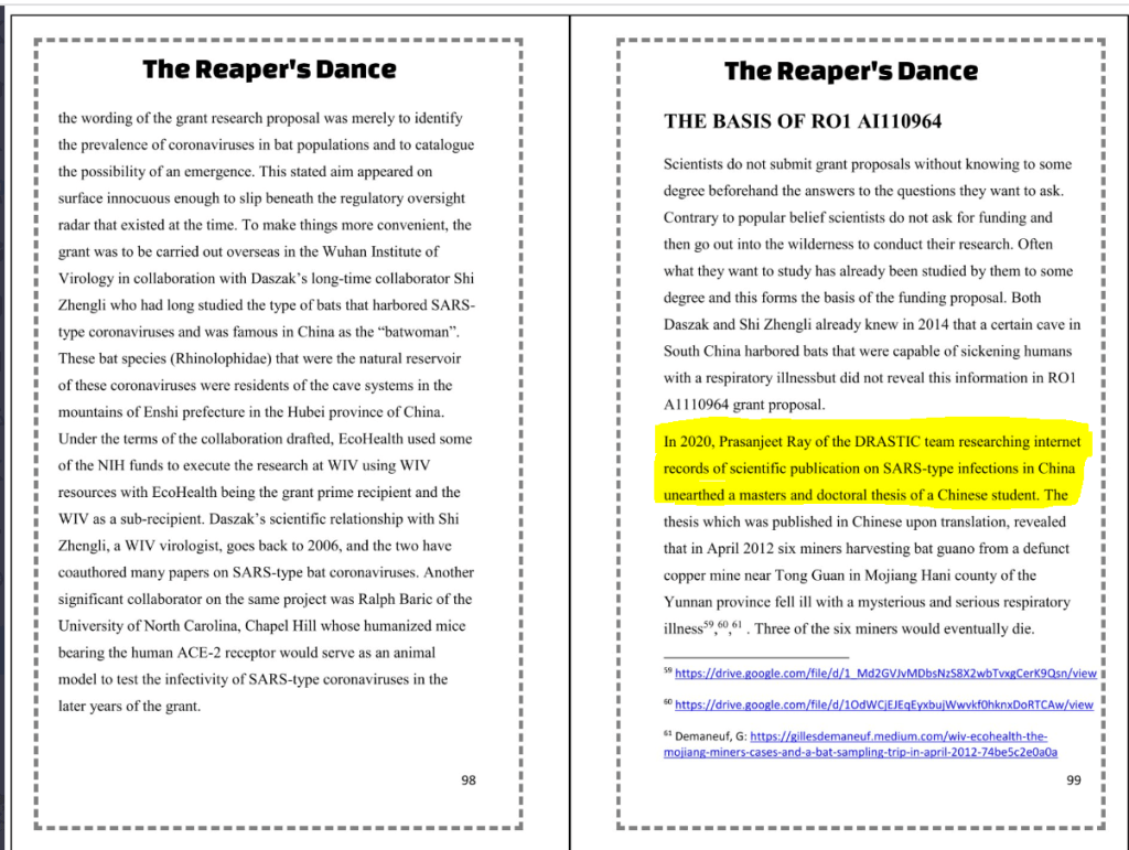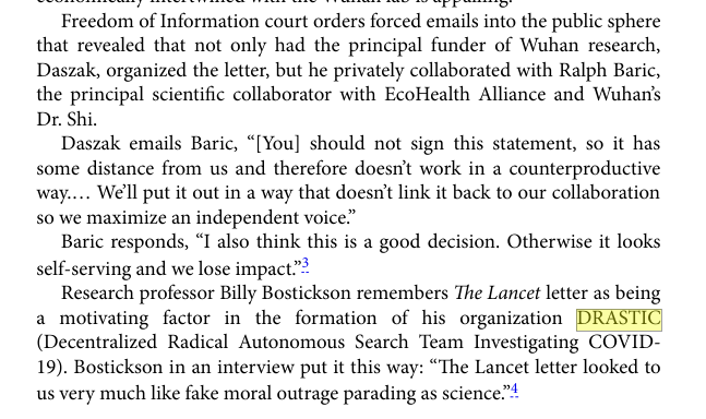 “Furthermore, I still have to write a word of thanks, which I will start on this weekend. I would like to thank the various members of DRASTIC very much: without them I would never have been able to write this book. And that is not only because of the pieces that the various members have written, but also because of the help that I received personally from some members of DRASTIC. Their work is already invaluable, but the personal help has given an extra dimension to the book that other books have not had so far. Furthermore, there are many people outside DRASTIC to whom I also owe a great deal of thanks for their tireless search for the real story about the origin of #SARSCoV2.”