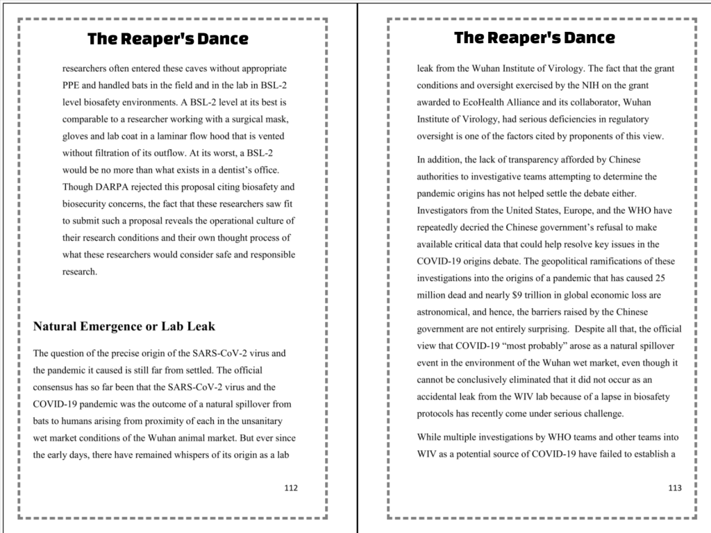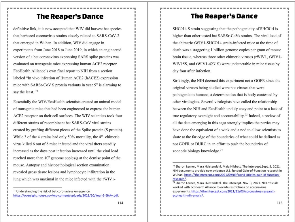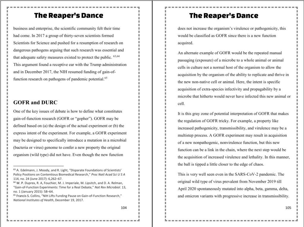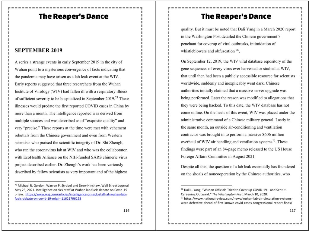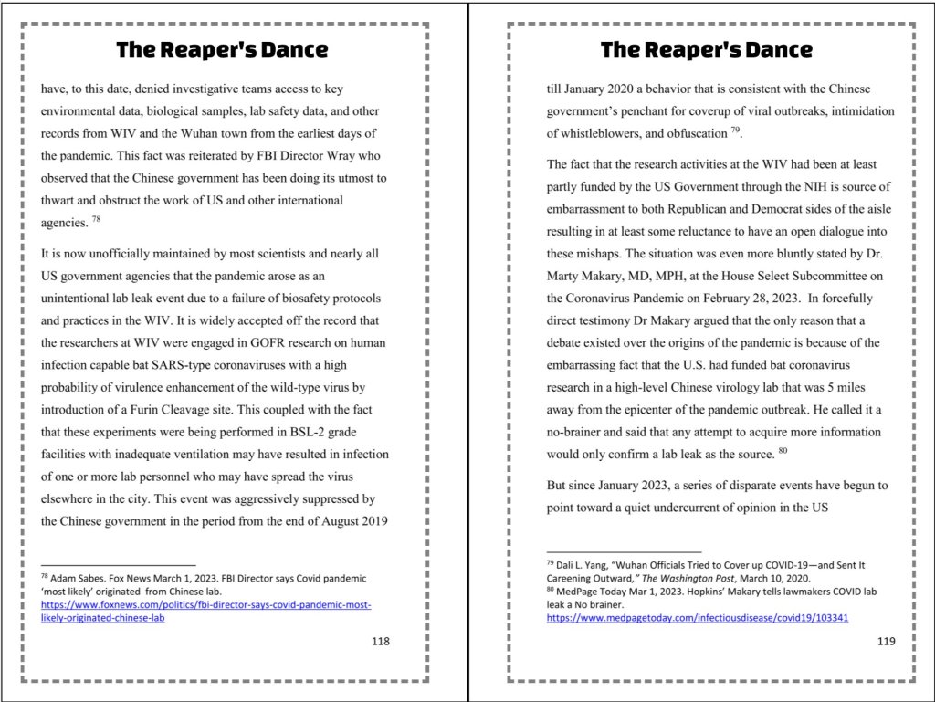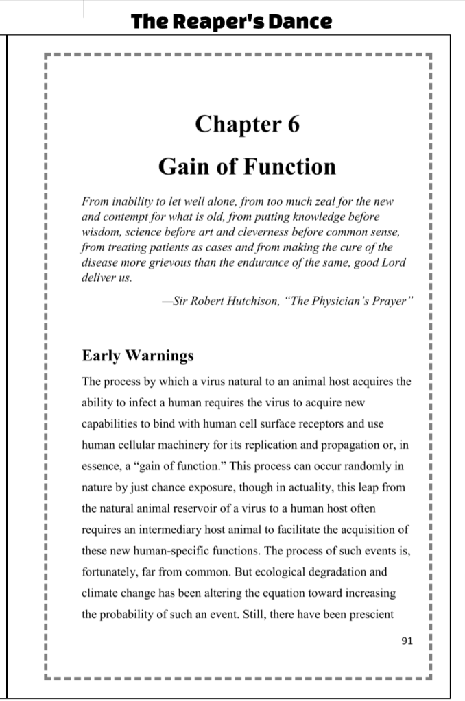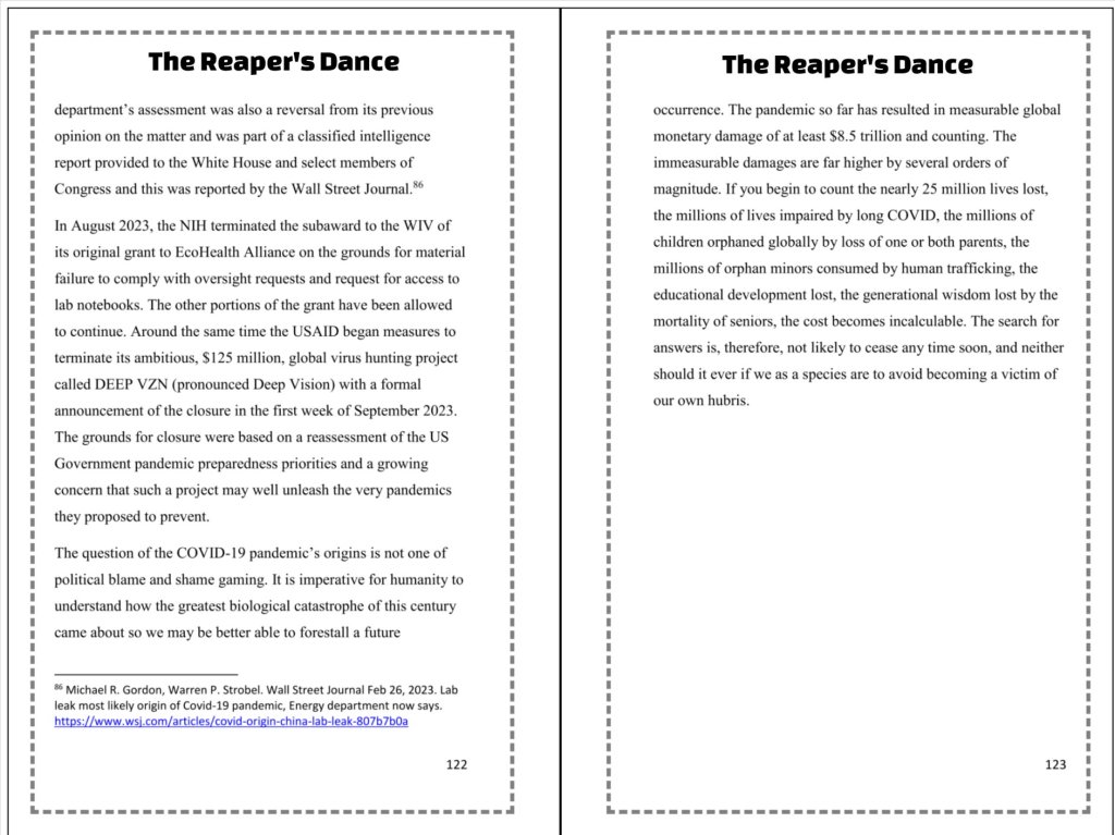 The Reaper’s Dance puts you in a ringside seat to the horror of the COVID pandemic, the calculations of men who were in positions to influence the fate of millions, the science that might have unleashed the pandemic, and the science that saved the world.