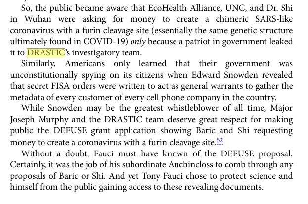 In his book “The Wuhan Cover Up” @RobertKennedyJr mentions the work of DRASTIC and DEFUSE, which are cited in Chapter 13 and Chapter 48: