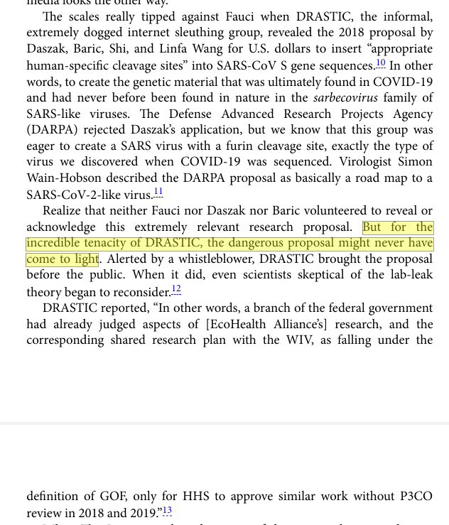 (2) “The scales really tipped against Fauci when DRASTIC, the informal, extremely dogged internet sleuthing group, revealed the 2018 proposal by Daszak But for the incredible tenacity of DRASTIC, the dangerous proposal might never have come to light”